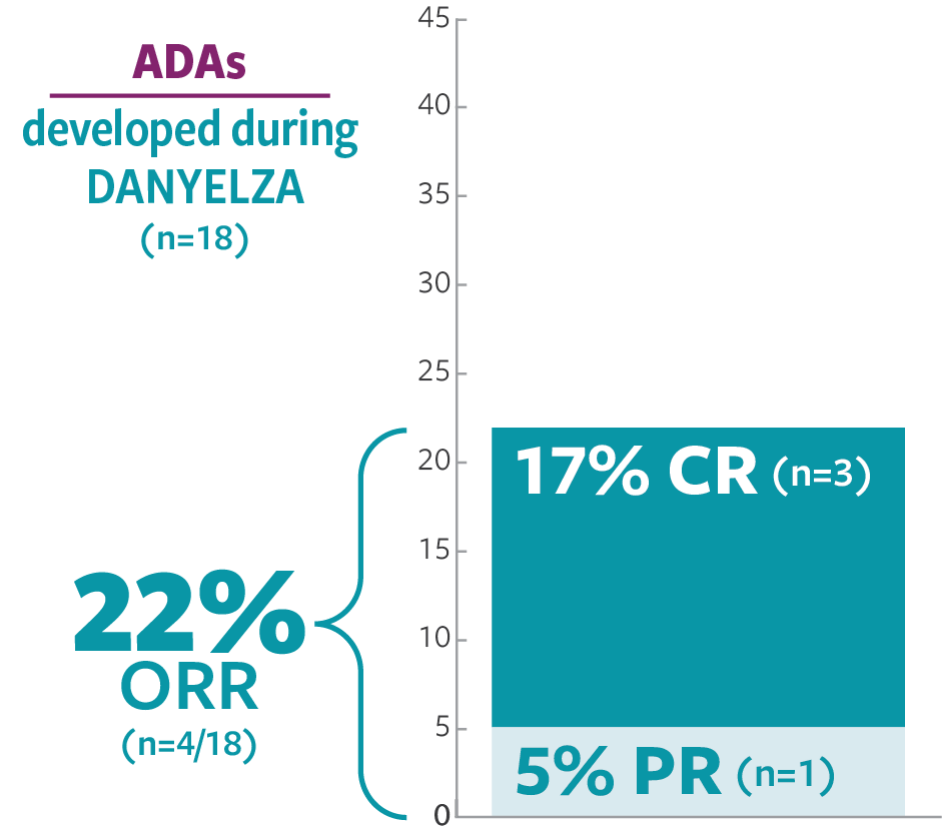 STUDY 201 pre-specified interim analysis (n=18): response rates in patients who developed anti-drug antibodies (ADAs)2
