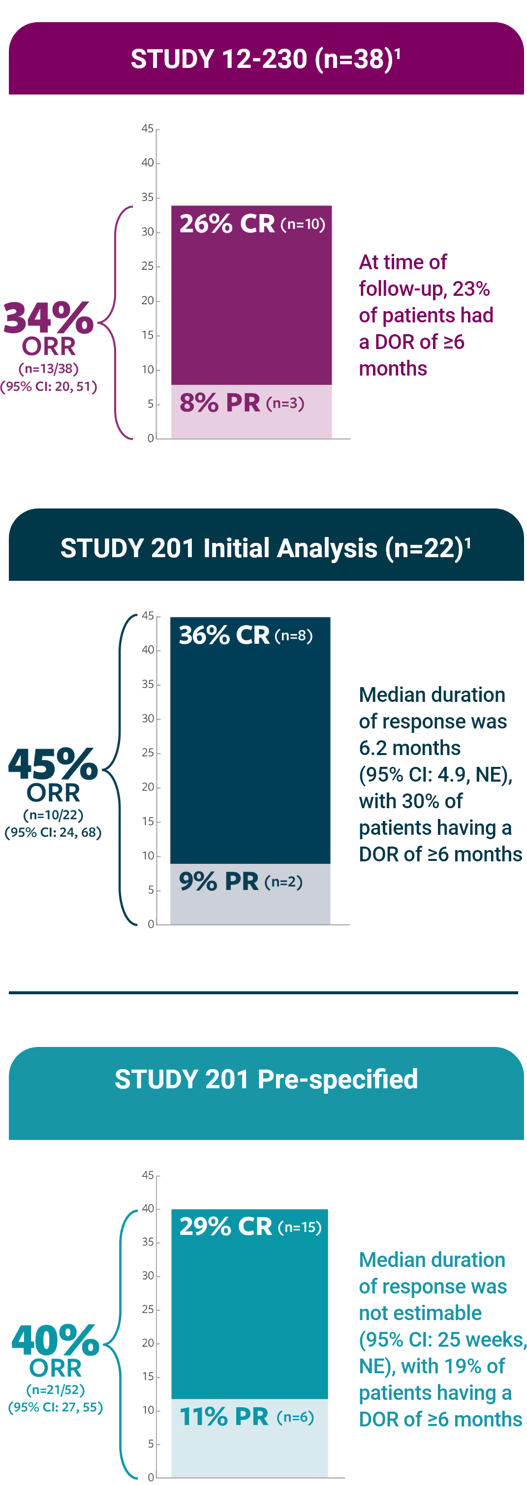 For the primary endpoint, a sample size of at least 37 patients in the efficacy population is sufficient to ensure at least 90% power to exclude an ORR of 20% or less at the two-sided 5% level.2
