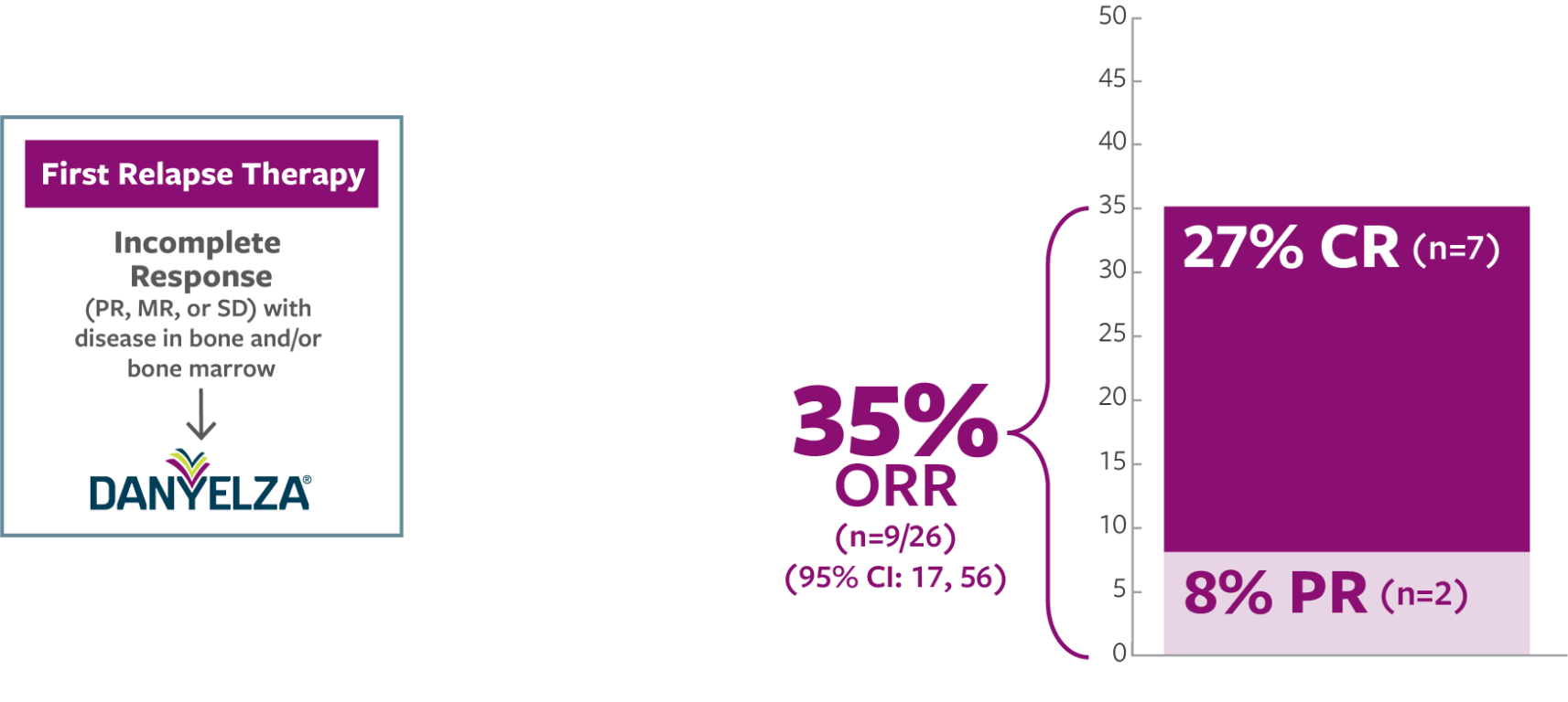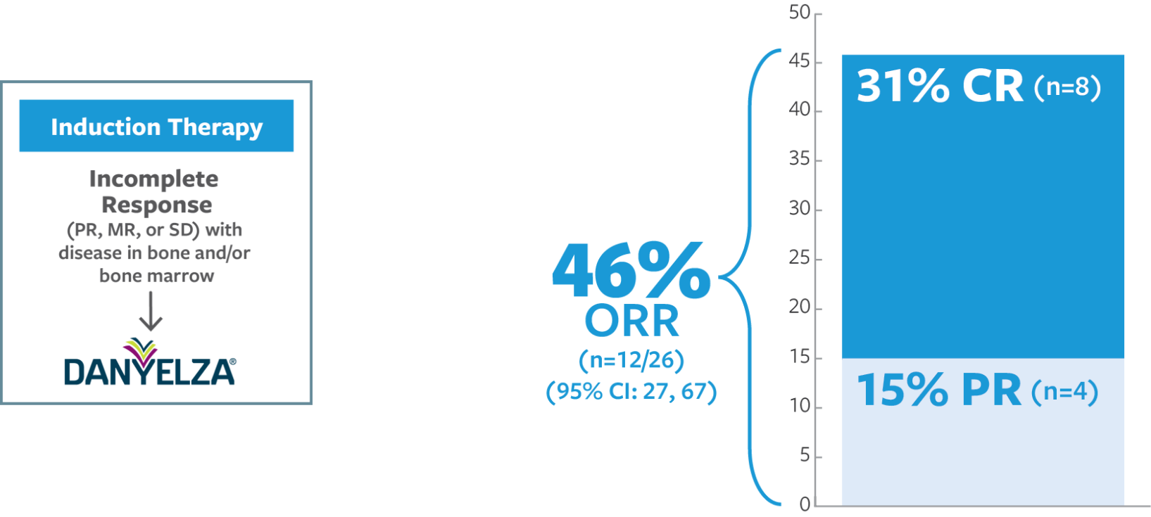 Effectiveness of DANYELZA with GM-CSF was evaluated by independent pathology and imaging review. Responses were observed in the bone, bone marrow, or both bone and bone marrow.1,2