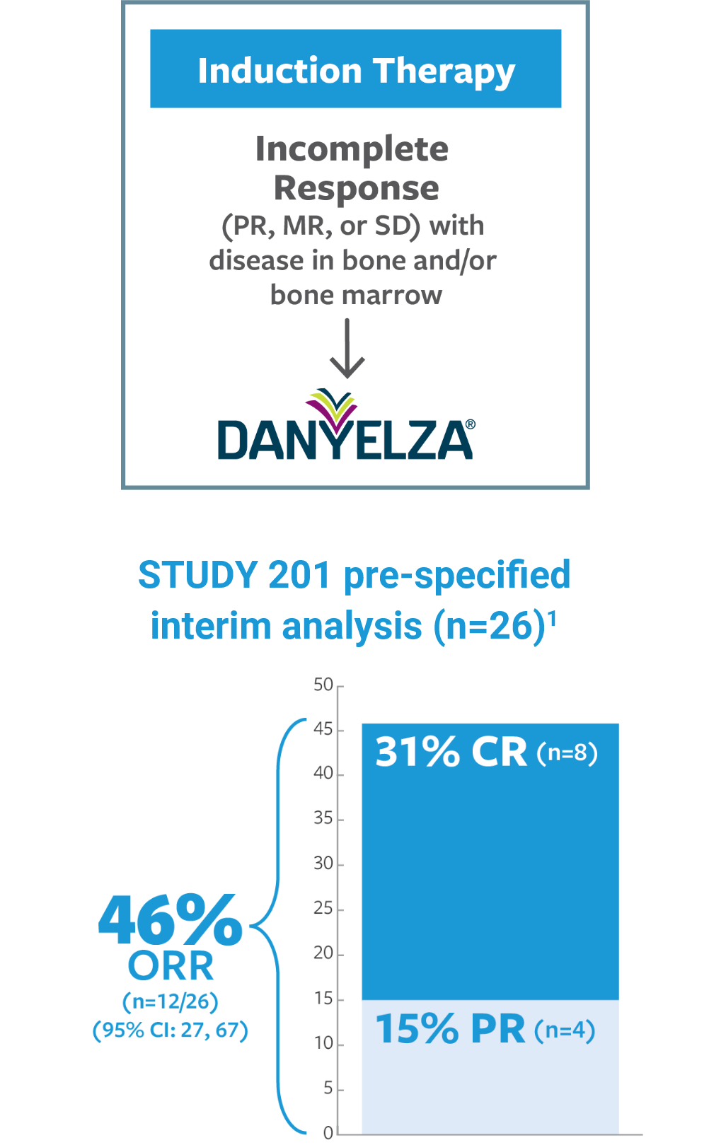 Effectiveness of DANYELZA with GM-CSF was evaluated by independent pathology and imaging review. Responses were observed in the bone, bone marrow, or both bone and bone marrow.1